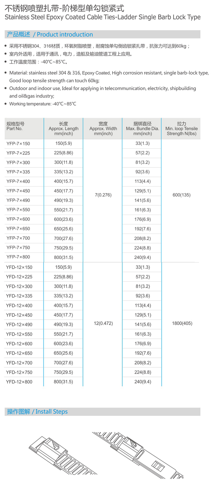 Stainless Steel Epoxy Coated Cable Ties-Ladder Single Barb Lock Type