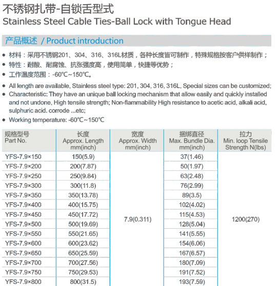 Stainless Steel Cable Tie-Ball Lock with Tongue Head